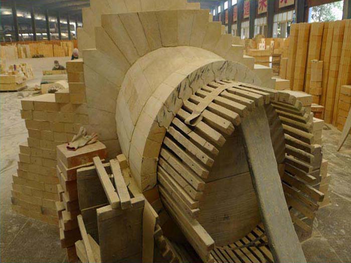炉腰:起着缓冲上升煤气流的作用。炉料在这里已部分还原造渣,透气性较差,故炉腰直径有逐渐扩大之势。炉腰髙度则不易过高,大高炉一般为2m左右,如某1000m3高炉,其炉腰高度仅616mm。另外,因为炉腰部位的物料冲刷严重,所以炉腰是髙炉的一个薄弱环节。荣盛耐材技术人员会为您提供合理施工方案。